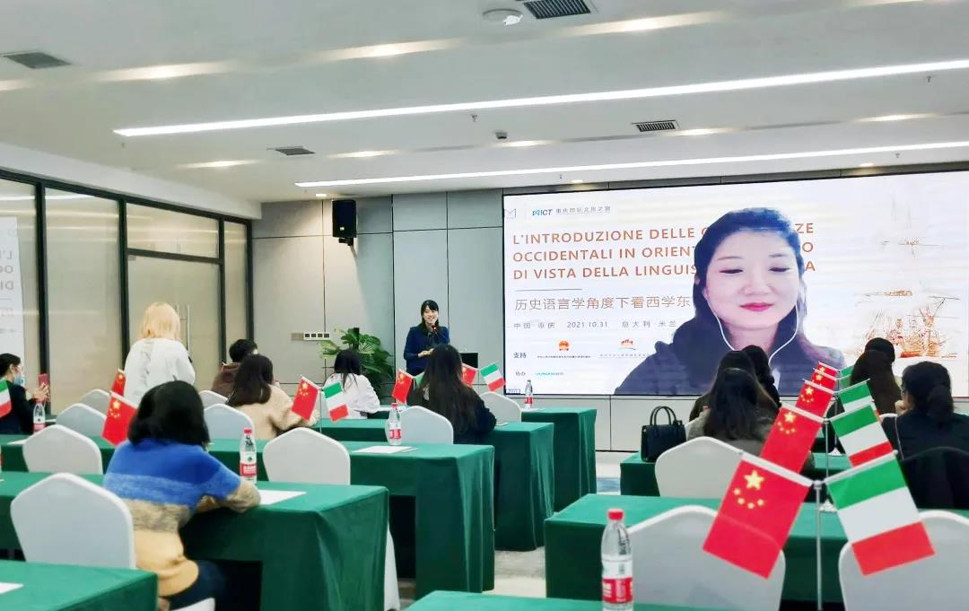 圍繞“歷史語言學角度下看西學東漸”,北京大學、西安外國語大學、廣州航海學院外語學院三位專家線上分享,四川外語學院、重慶外事外語學院、重慶理工大學近30名師生現場參會,意大利當地近170人線上參會?;顒娱g隙通過會議系統線上分享重慶文旅宣傳片,促進重慶文旅在海外網絡的對外宣傳推廣。